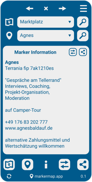 Markermap.app ist eine offene, dezentrale Kartenplattform, auf der Menschen, Projekte und Orte als Marker auf einer interaktiven Weltkarte sichtbar werden. Anstatt in Listen zu blättern, entdeckst du Netzwerke visuell – Marker auf Maps, erstellt, geteilt und kombiniert von der Community. So entsteht ein globales, unabhängiges Netzwerk, das von allen gestaltet und miteinander kontrolliert wird.