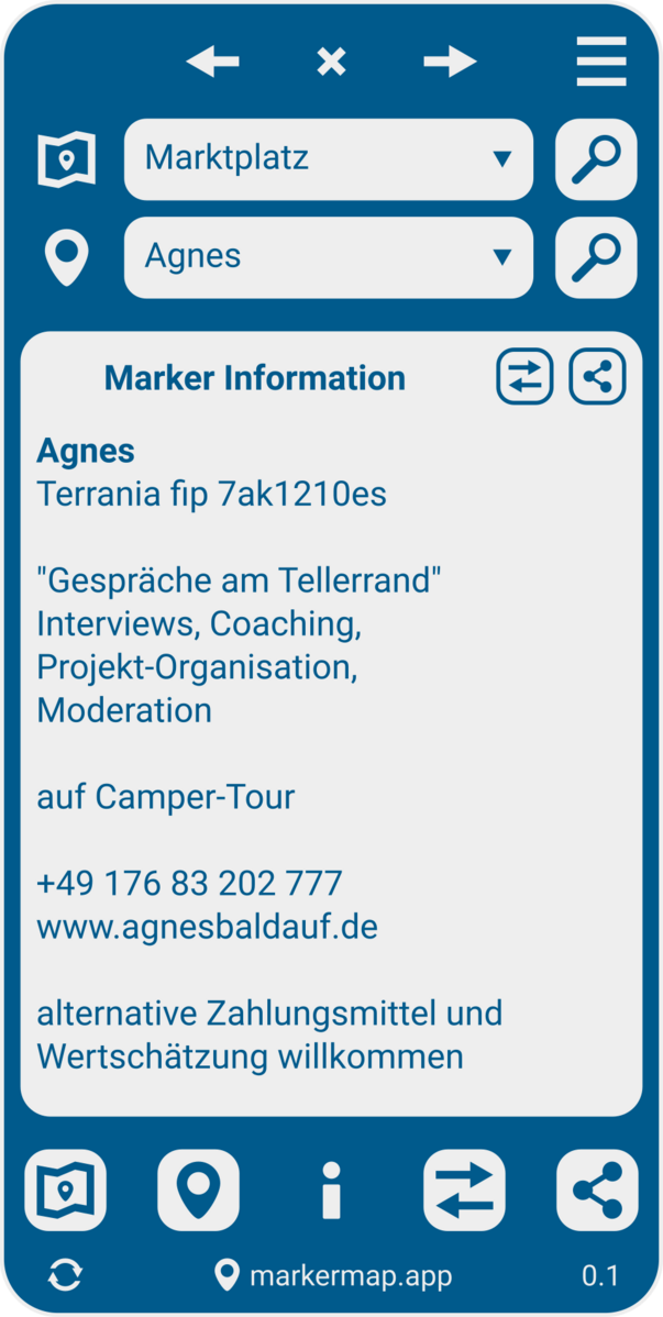 Markermap.app ist die mobile, dezentrale Erweiterung von Markermap.net – eine interaktive Kartenplattform, die Orte, Projekte und Gemeinschaften in Form von Markern auf einer Weltkarte sichtbar macht.